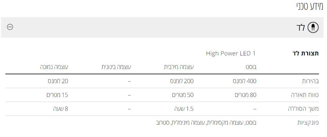 - מצב סטרוב עוצמתי נועד לסנוור תוקפים בצורה זמנית עם עוצמת אור של כ – 400 לומן.